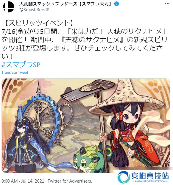 在《任天堂明星大乱斗:特别版(Super Smash Bros. Ultimate)》中,一些玩家喜好的角色虽无缘成为可操控角色登场,但也通过“命魂”的形式加入到游戏中,官方也会不时公布新的命魂联动。近日,任天堂宣布,《任天堂明星大乱斗》将与《天穗之咲稻姬》进行联动,追加3种新命魂,7月16日正式上线,活动持续5天。