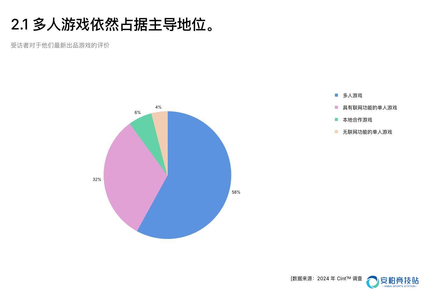 报告还揭示了多人游戏在游戏开发中的主导地位,占比达到58%。令人惊讶的是,20%的1-2人微型团队也在尝试开发多人游戏。在多人玩法融合方面,射击/大逃杀、冒险以及街机/平台跳跃类游戏排名前三。在线多人游戏最受欢迎,其次是非对称多人游戏和异步多人游戏。