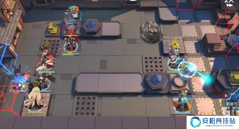 塞雷娅右上角放42姐朝下,这里带的是一技能,也可以带剑兔等法术输出干员。