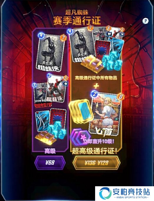 即日起,购买「超凡蜘蛛」通行证即可获得全新的角色「共生体蜘蛛侠」,随着通行证等级的提升,还可以解锁全新变体、头像、卡背和其他资源。